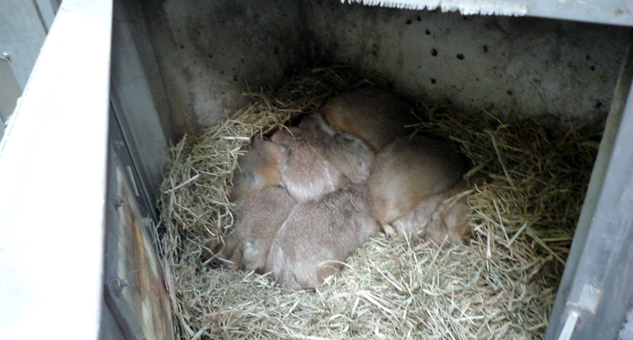 この季節の早朝、プレーリードッグたちはほとんどの個体が巣穴内で睡眠状態なので、作業もこの時期におこないます。2015年11月16日、朝7時に担当者が集合し、6名が2人ずつ組になり、プレーリードッグたちの「寝込み」を狙って捕獲を試みました。ほとんどの個体はこの「寝込み襲撃作戦」で捕獲できますが、捕まえられなかったプレーリードッグは、放飼場の土入れ替え作業と平行して捕獲します。