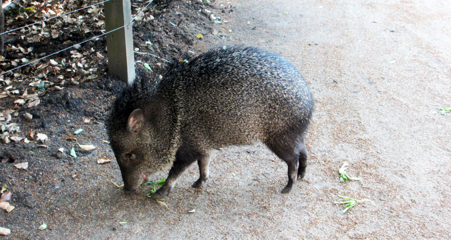 えさを食べているクビワペッカリー