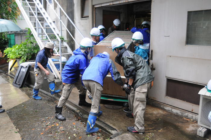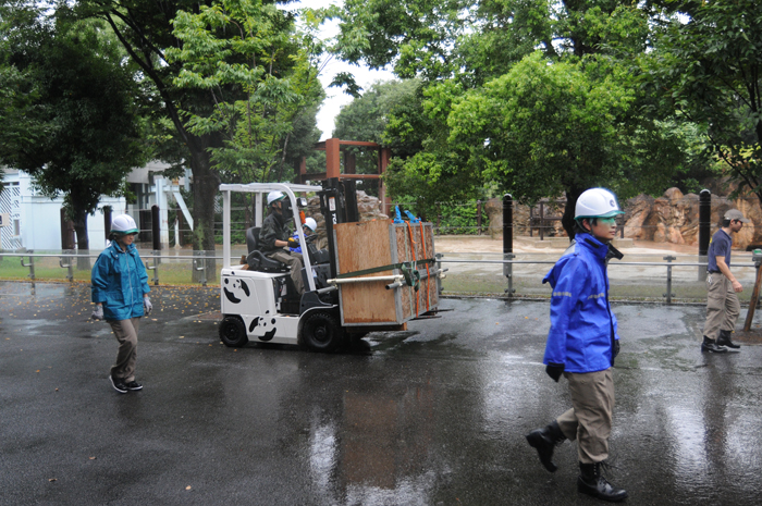 | ラマ・バク舎からバクを入れた輸送箱を搬出 | 園内での輸送箱の運搬 |
