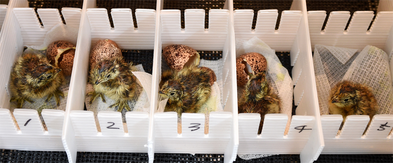 孵化後約2週はとくに体調をくずしやすいので、これまでのスバールバルライチョウの孵化や育雛の経験を活かし、注意深く飼育、観察します。