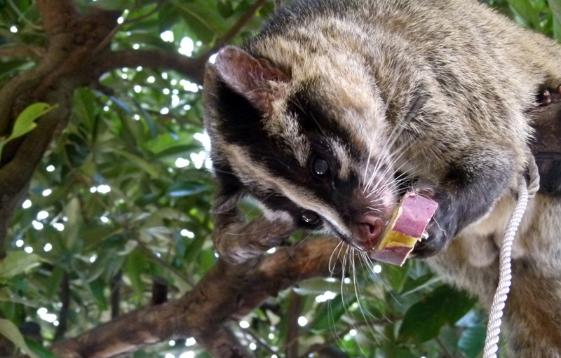 現在、園内工事で伐った丸太などを再利用し、展示場に置いてハクビシンの飼育環境充実をはかっています。もしかしたら、新たな行動を見ることができるかもしれません。楽しみにお待ちください!