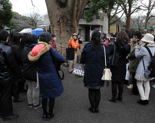 ジャイアントパンダをより深く知っていただくため、まず動物解説員が観察時のポイントについて解説し、その後、パンダ舎で実際に観察。えさを食べている時間だったため、注目すべきポイントをじっくり見ることができました。