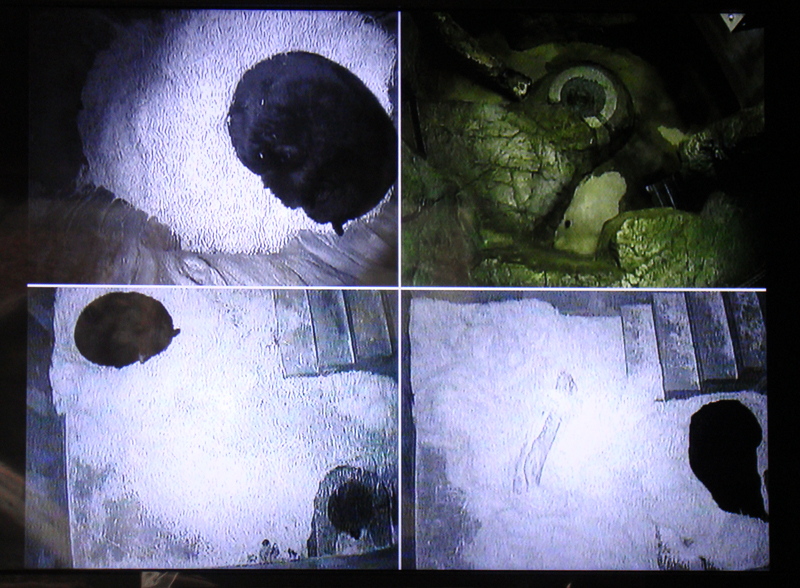 ツキノワグマの冬眠施設は、「展示室」「準備室」「冬眠ブース」の3部屋にわかれています。展示室に隣接する準備室は、東北地方の環境を参考にして作られ、室温をマイナス5℃まで下げることができます。準備室は、野生の冬眠穴を模して作られた冬眠ブースへとつながっており、冬眠中のクマはほとんどの時間を冬眠ブースで過ごします。冬眠ブースと準備室の間は自由に行き来できるので、冬眠ブース内の温度は準備室の設定温度に影響され、およそ0℃です。