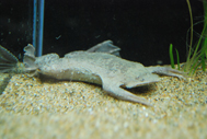 このカエルは南米の熱帯域の泥底の川や湖に生息し、一生を水の中で過ごします。また、別名を「コモリガエル」と言い、メスは産んだ卵を背中の皮膚にとりこみ、その中でオタマジャクシが成長してカエルになり母親の背中から出てくるという、ユニークな繁殖方法で知られています。