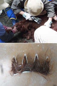 バリカンを3台使い、一定時間で人もバリカンも交代し、バリカンのメンテナンスと平行しながら毛刈りをおこなうという作戦で実施しました。