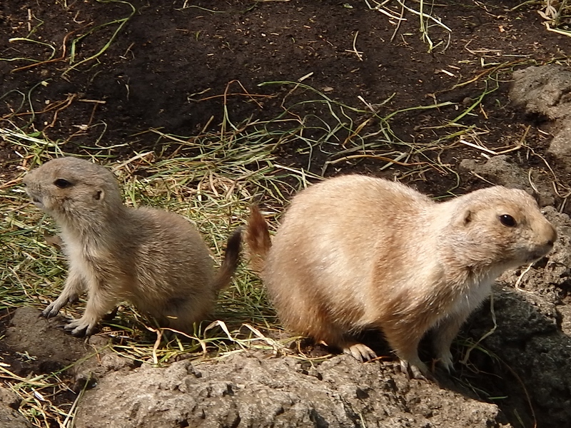 北アメリカ中部の草原で、地中にトンネル状の巣穴を掘ってくらすリスの仲間です。危険が迫るとイヌに似た声で鳴くのでこの名がつきました。上野動物園の東園でも、安全な地中の巣で子どもを生み、ある程度大きくなってから地上に出てくるので、正確な誕生日はわかりません。