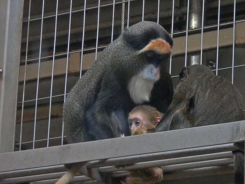 中央アフリカの森林に住むサルで、あごひげのような白い毛が特徴です。果実や木の葉のほか、昆虫なども食べます。生まれたばかりの子供は親と違って、全身金色の毛をしています。上野動物園では東園のサル舎で飼育中です。