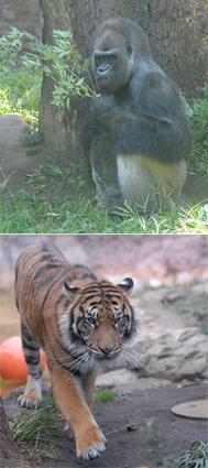 | インドライオン、スマトラトラ、シロテテナガザル、コサンケイ |