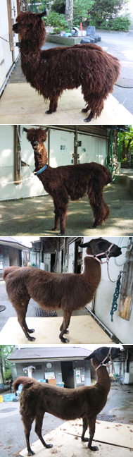 写真中下:ラマの毛刈り前