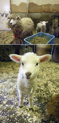 そして3月9日朝、アリスのようすを見に行くと、もうすでに「ぶええ〜」と鳴くほど元気な赤ちゃんヒツジがアリスの横に座っていました。あまりに自然な光景だったので、思わず二度見してしまったほどです。赤ちゃんヒツジはしっかりと立ちあがり、担当者の前でアリス母さんのおっぱいを飲み始めました。