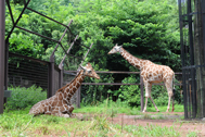 上野動物園では2011年7月25日の休園日、職員たちの見守る中でキリンのコハル(メス、14歳)とヒナタ(オス、1歳)を初めて同居させました。