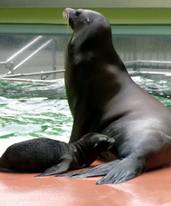 カリフォルニアアシカが東園から西園のカバ舎へ移って2年目になりました。ずいぶんと環境にも慣れ、2011年6月21日には新たな家族が増えました。