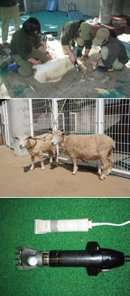 仕方なく、犬用の小さなバリカンとハサミで地道に刈る破目になりました。そんな毛刈りを見た来園者はガッカリしたことでしょう。立派なバリカンを横目に、私たち職員も恥ずかしくて逃げ出したい気持ちになりました。