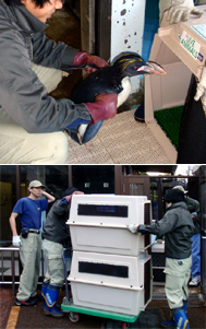 2009年12月4日、上野動物園から全個体(オス2羽、メス1羽)、および、千葉県鴨川市の鴨川シーワールドの全個体(オス1羽)を、山口県の下関市立しものせき水族館(海響館)に移動させました。