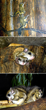 上野動物園の小獣館では、ニホンモモンガはずっとオス1頭しか飼育していませんでした。しかし昨年(2008年)、富山市ファミリーパークで生まれたメス2頭が来園し、オスと同居させたところ、メス2頭が1頭ずつ赤ちゃんを産みました。