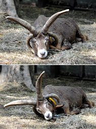上野動物園の子ども動物園にいる人気者、マンクスロフタンの「マロン」にとってもすごしやすい気候となったようです。マロンはお客さんが大好き。自分から柵のそばまで行って、お客さんに角や体を触ってもらうのがお気に入りです。とくに、前の角(上向きの角です。写真参照)の根元をなでてもらうのが好きです。