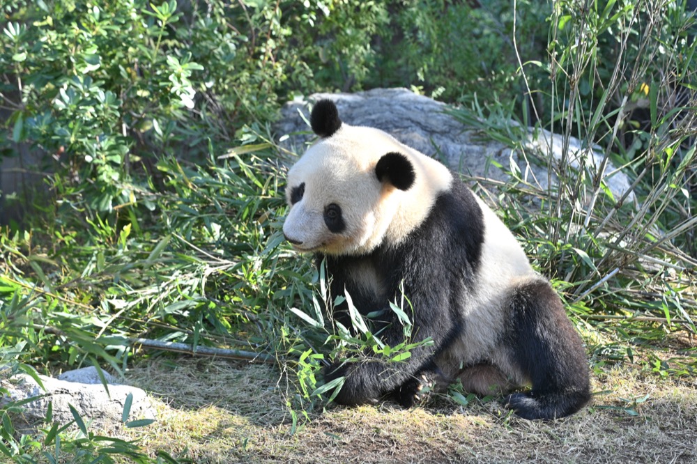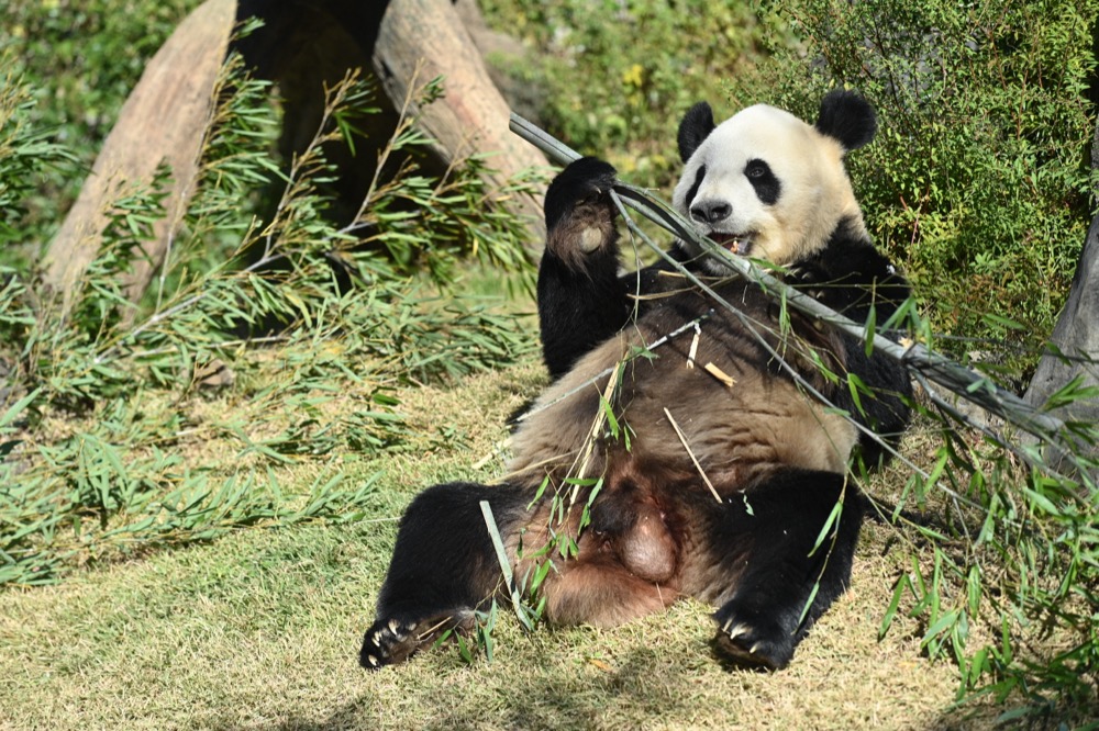 動物の状態や天候などに合わせて管理場所を変更していますが、パンダにとってすごしやすい季節となってきたので、屋外に出す機会が増えてきています。10月20日以降は開園日の屋外放飼を再開しており、タケの採食や休息など、落ち着いて過ごすようすが見られています。