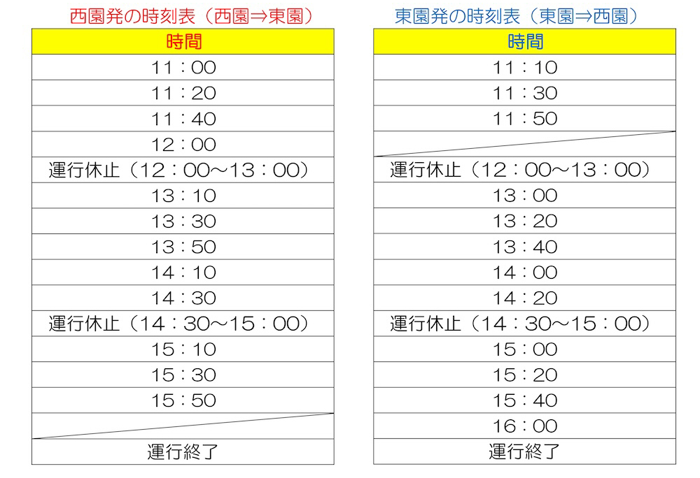 | 運行経路 | 東園(動物医療センター前) ⇔ 西園(いそっぷ橋下) ※約300メートル |
