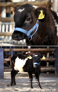子ども動物園での公開は11月23日でした。公開と同時に、11月29日まで、子牛の名前を募集していました。候補名の中から選んでいただく形式です。その結果、「桜」(さくら)に 228票、「琴」(こと)が 106票、「葵」(あおい)148票、「若菜」(わかな)100票でした。こうして、圧倒的な人気の「桜」に決定! 4月生まれですし、かわいらしい顔にぴったりの名前になりました。