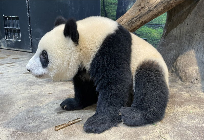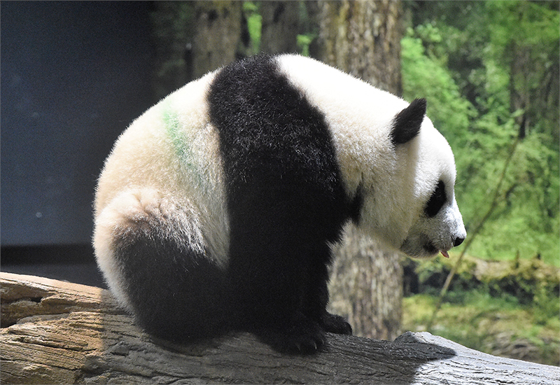 さて、肝心のシャオシャオとレイレイを、どちらのポーズにするのかですが……飼育係が持つ「2頭への印象」で決めました。シャオシャオは飼育係が声をかけるとキラキラとした顔を向けてくることに定評があるので、顔に重点を置いた犬座りにしました。一方、レイレイはどっしり腰を据えて、周りにあるタケを手あたりしだいに食べるので、パンダ座りがぴったりだという結論に至りました。