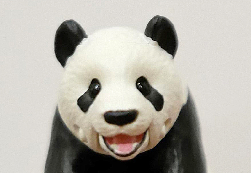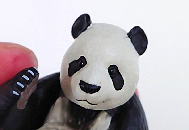 もうひとつは、四肢と尻をついた犬座りのポーズにしました。アニアは「動かして遊べる可動パーツ付動物フィギュア」なので、その特徴を活かして、パンダのフィギュアとしてはめずらしい口を動かせる仕様を採用し、シンプルなポーズで顔部分を映えさせることで表情の変化をしっかり楽しめるようにしました。