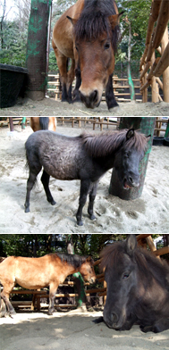 上野動物園にトカラ馬の琥太郎(こたろう、オス)が来て4か月、木曽馬の幸泉号(さちいずみごう)が来て3か月が過ぎようとしています。最初は食あたり、糞がゆるい、糞が出ない、まぶたに擦り傷がある等、こちらも気の休まるひまがありませんでした、2頭の性格や癖がわかるようになると、飼育にも心の余裕ができました。馬たちも環境になれ、のんびり過ごしています。