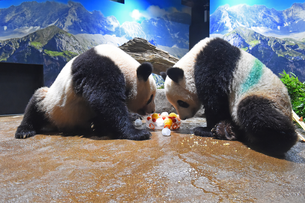 ※エンリッチメントとして、シャオシャオとレイレイに氷を与えました。