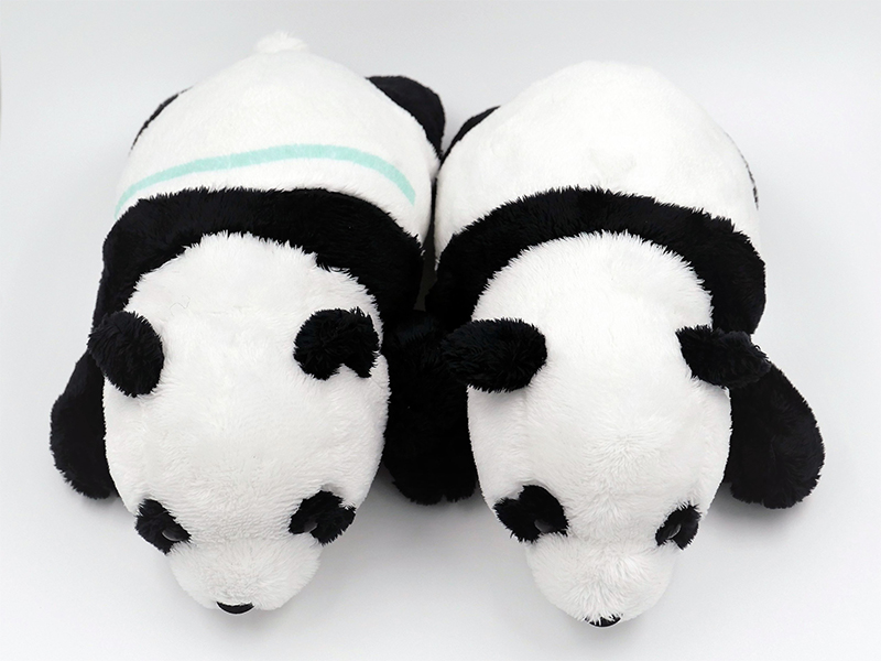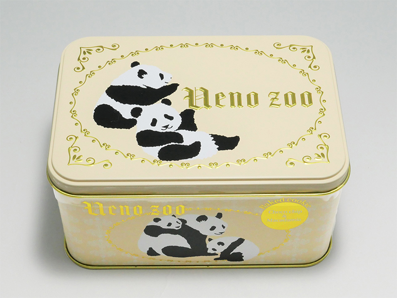 | ぬいぐるみパンダの仔(伏せ)各税込2,750円 | 双子パンダの缶入りベイクドクッキー 税込1,200円 |