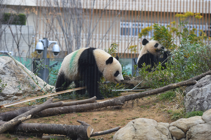 「パンダのもり」改修工事のため、展示場所を変更していましたが、2月27日にもとの部屋に戻りました。その後の2頭の行動には、特に変わったところは見られていません。