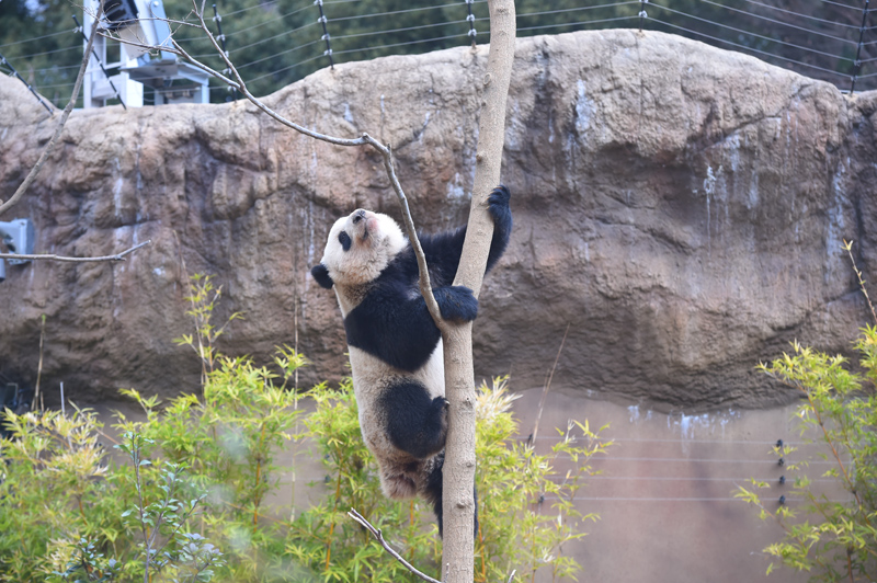 動物の状態や天候などに合わせて管理場所を変更していますが、パンダにとってすごしやすい季節のため、屋外に出す機会が増えています。「パンダのもり」改修工事のため、展示場所を変更していましたが、2月27日にもとの部屋に戻りました。その後のリーリーの行動には、特に変わったところは見られていません。