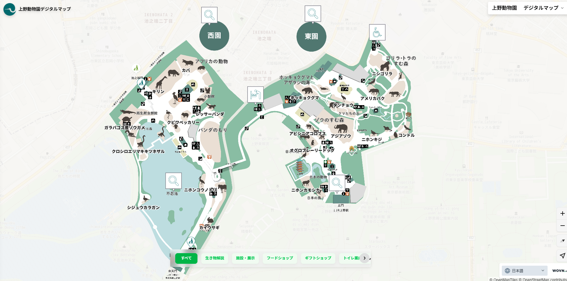 上野動物園内の売店やレストラン、モノレール、コインロッカー、AED、公衆無線LANサービス(Wi-Fi)などについてご案内するページです。