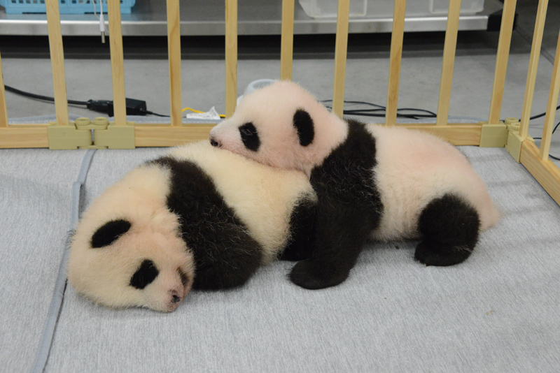 大熊猫双胞胎(左#2·雌性,右#1·雄性,75天龄)