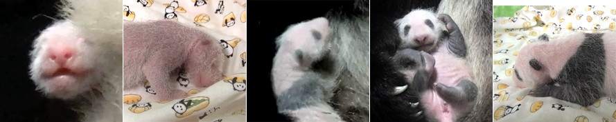 从左边开始,2017年6月17日,6月17日,6月26日,7月1日,7月2日孩子顺利成长,完全变成了熊猫图案。作为出生后超过10天不稳定期的孩子,自1988年6月23日出生的优优以来,时隔29年。在过去的30年里,大熊猫的饲养技术取得了进步,仅出生150克左右的新生儿的存活率也大大提高。