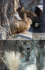 雄性2010年4月出生,雌性2009年5月和2010年4月出生,期待今後的繁殖。野兔們在飼養員從觀覽側看的時候很平靜,但是稍微進入動物舍的話就會嚇一跳。你知道只要不是在動物舍裡面,不管人離得多近都不危險嗎?