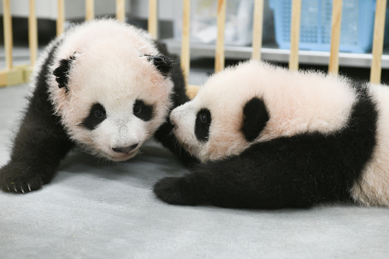 大熊貓雙胞胎的成長——50日齡前夕