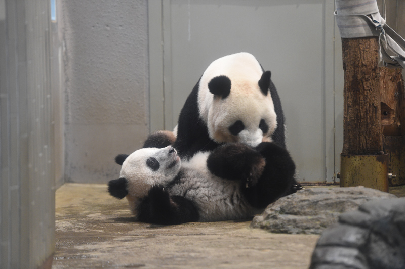 白天涼爽的時候,媽媽“欣欣”和香香住在大熊貓館室內2號房和室外運動場A,氣溫高的時候和晚上住在室內2、3號房。